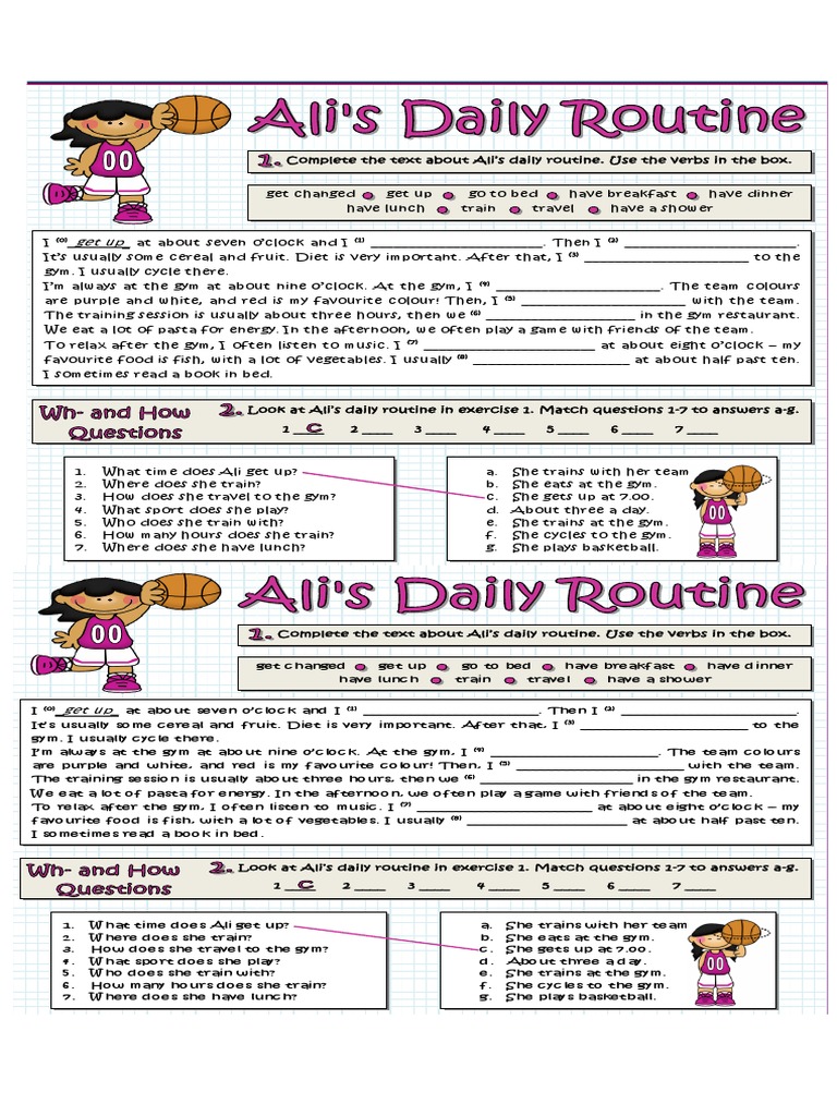 Ali: I’m fine thanks, Pat. Complete the text about Ali’s daily routine. Use the verbs in basketball
