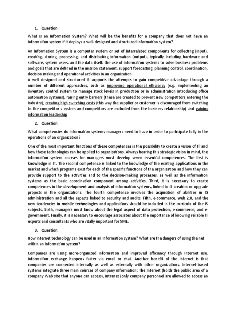 What is an Information System? What will be the benefits for a company that does not have an