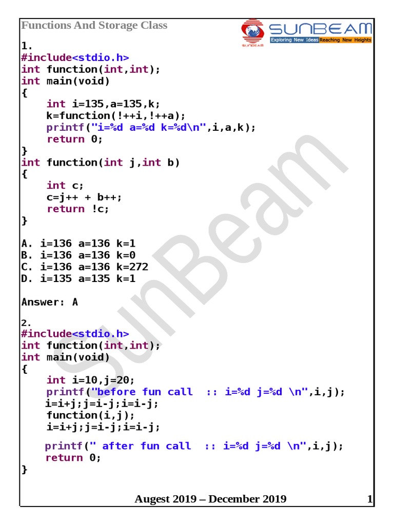 printf(" after fun call :: i=%d j=%d \n",i,j);