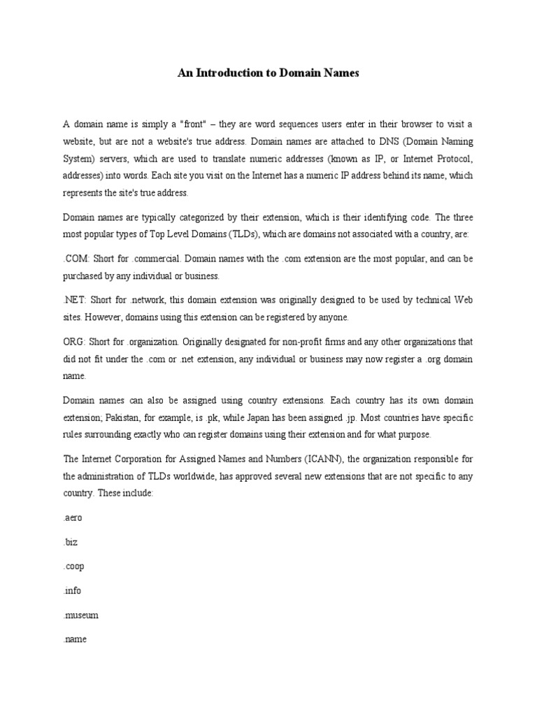 An Introduction to Domain Names