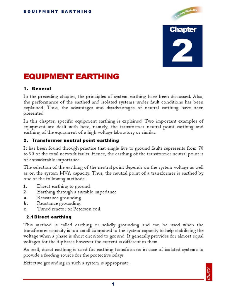 In the preceding chapter, the principles of system earthing have been discussed. Also,