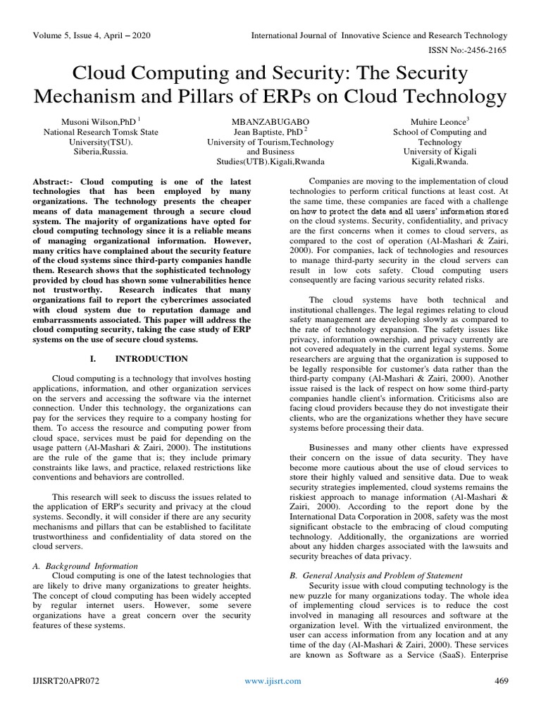 cloud computing security, taking the case study of ERP the rate of technology expansion. The safety issues like