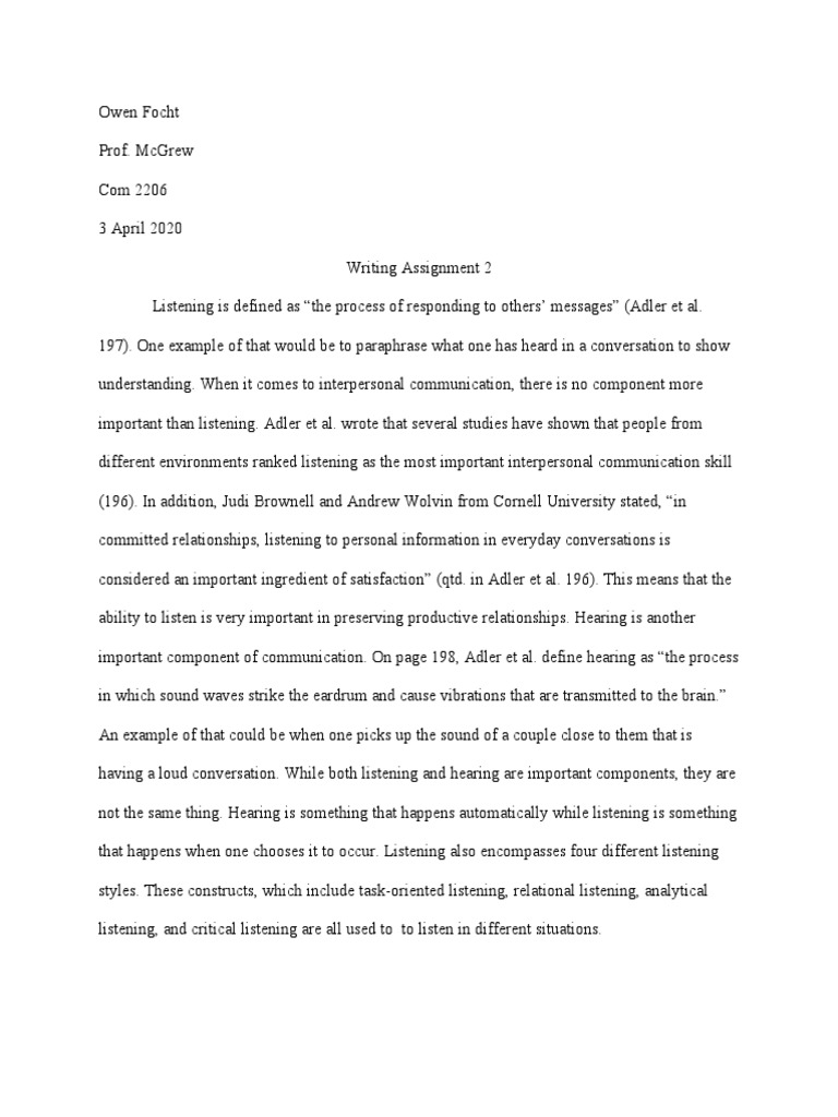important than listening. Adler et al. wrote that several studies have shown that people from