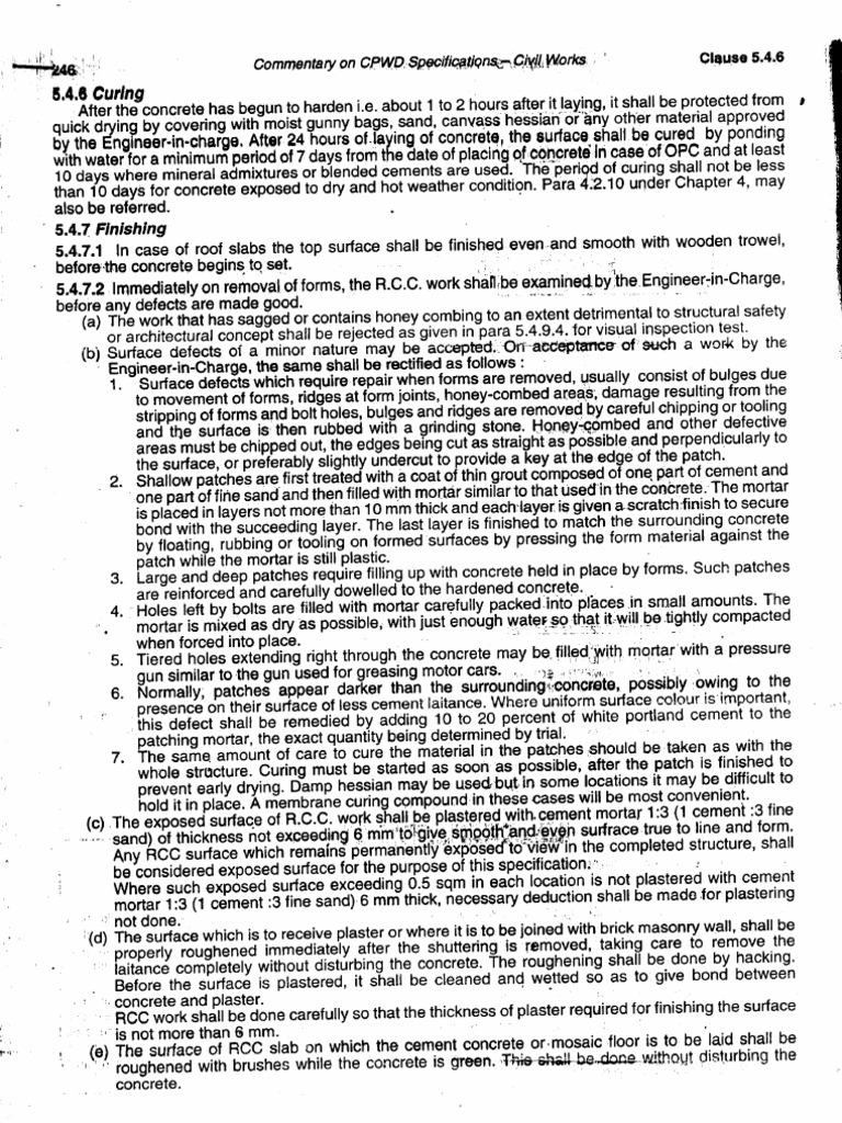 5.4.7.2 Immediately on removal of forms, the R.C.C. work shan,be examineq.by~theEngineer7in-Charge,