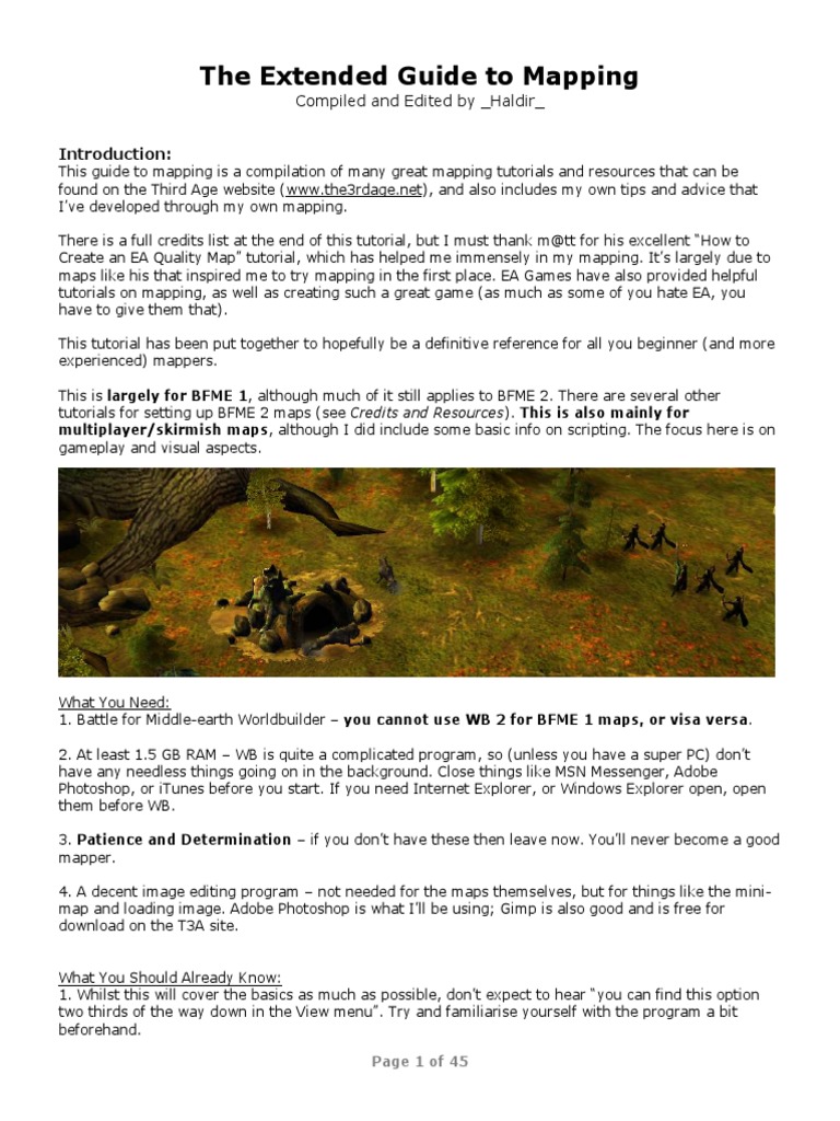 tutorials for setting up BFME 2 maps (see Credits and Resources). This is also mainly for