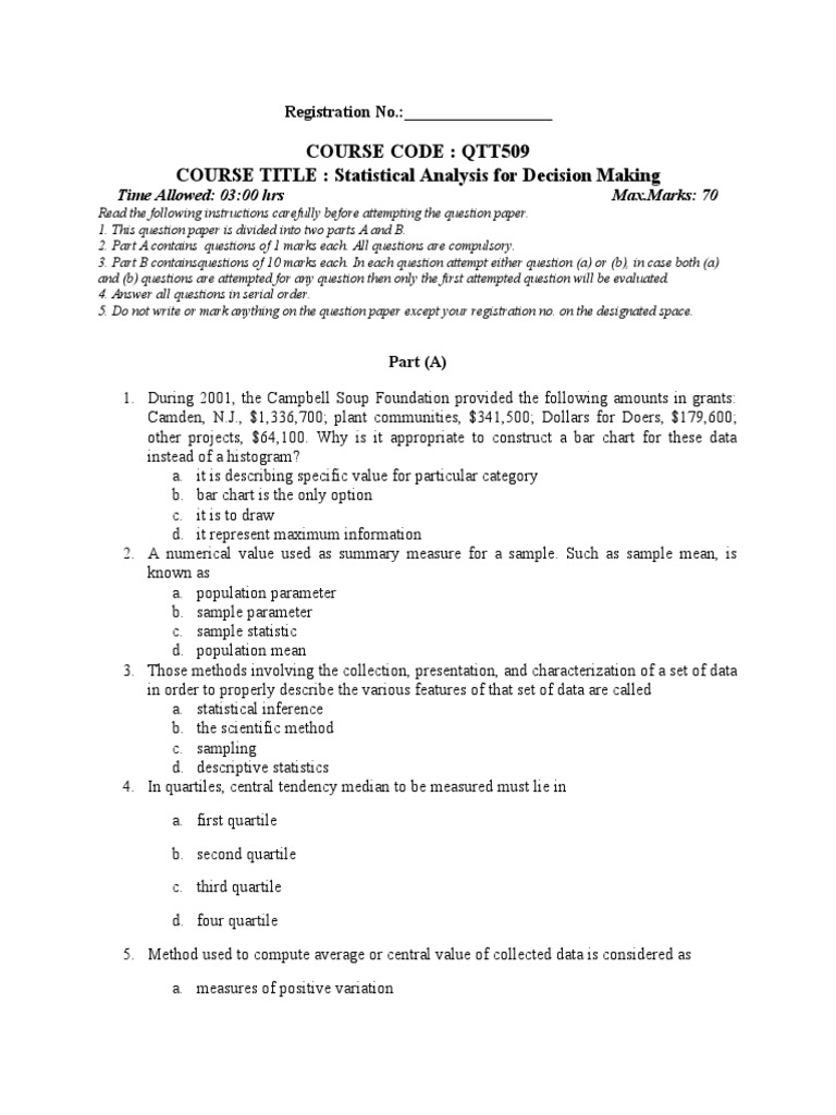 COURSE TITLE : Statistical Analysis for Decision Making