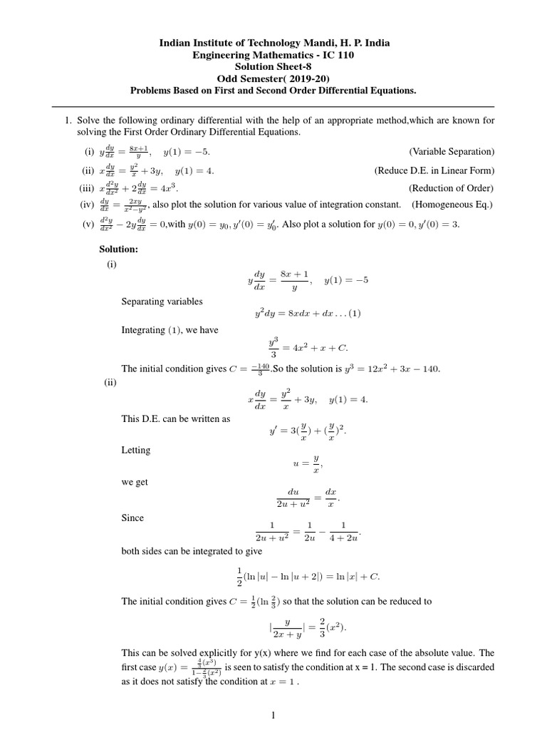 1. Solve the following ordinary differential with the help of an appropriate method,which are known for