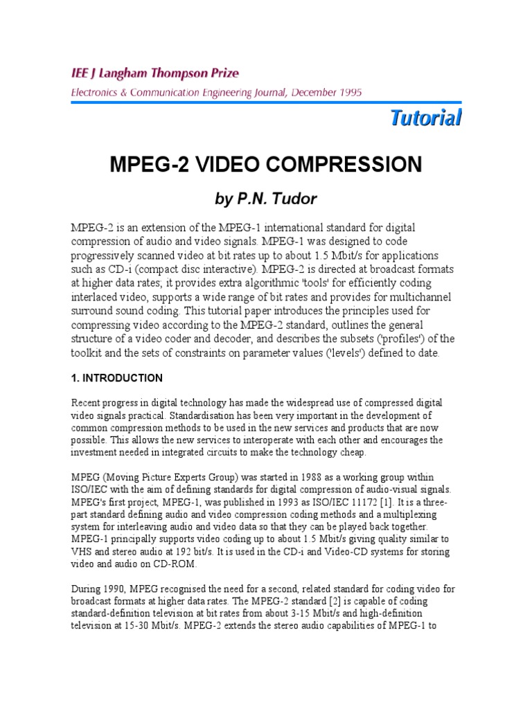 progressively scanned video at bit rates up to about 1.5 Mbit/s. MPEG-2 provides extra