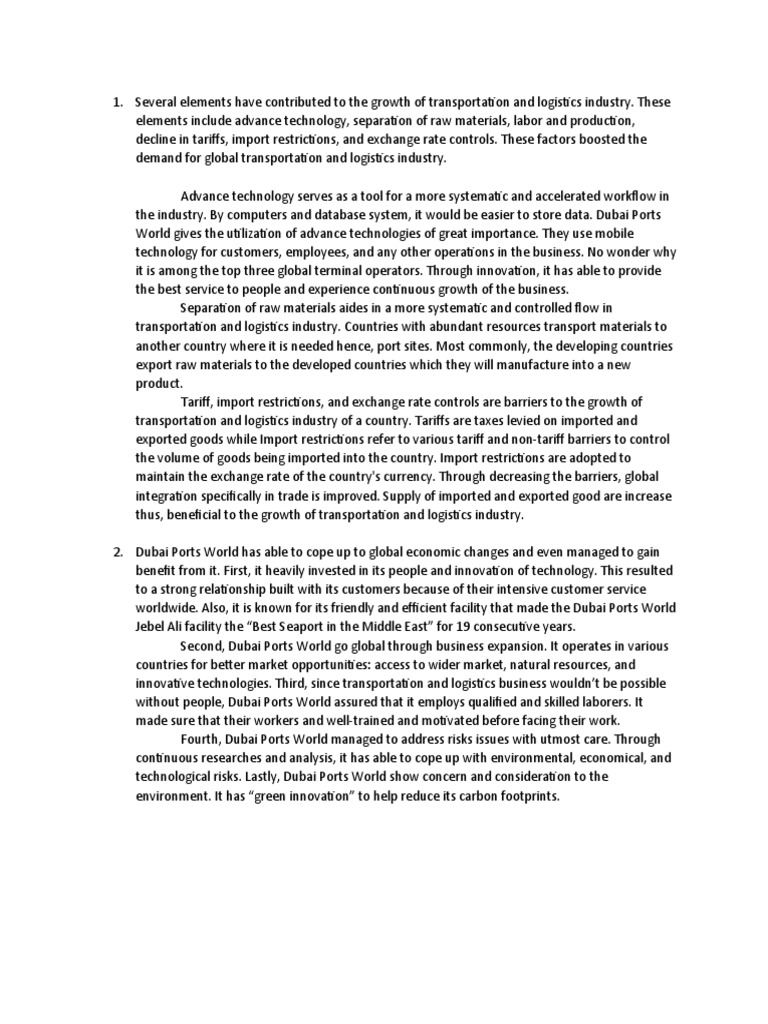 2. Dubai Ports World has able to cope up to global economic changes and even managed to gain