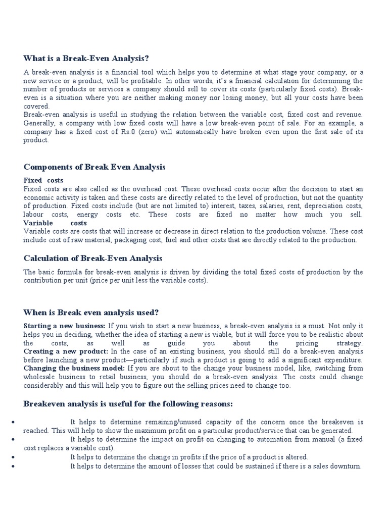 may forget about few expenses. Therefore, if you do a break-even analysis you have to review all your