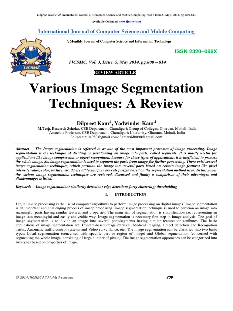 [6] G. K. Seerah, K. Rajneet, “Review on Recent Image Segmentation Techniques”, International Journal on Computer Science and Engineering (IJCSE),