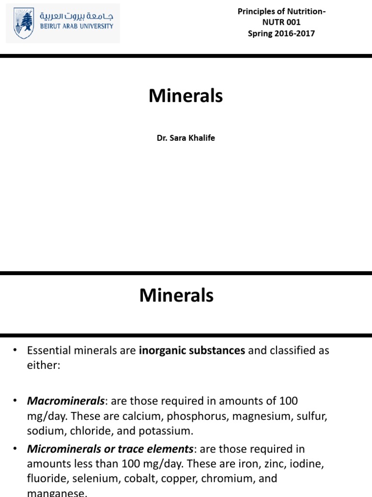 amounts less than 100 mg/day. These are iron, zinc, iodine,