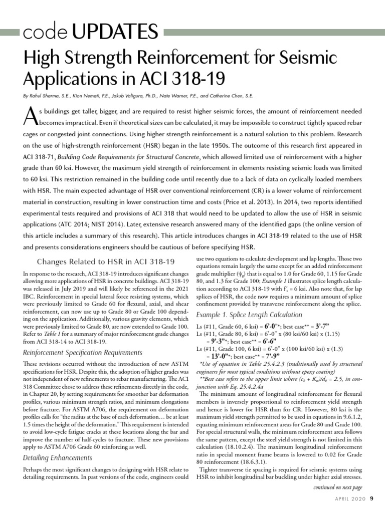 this article includes a summary of this research). This article introduces changes in ACI 318-19 related to the use of HSR