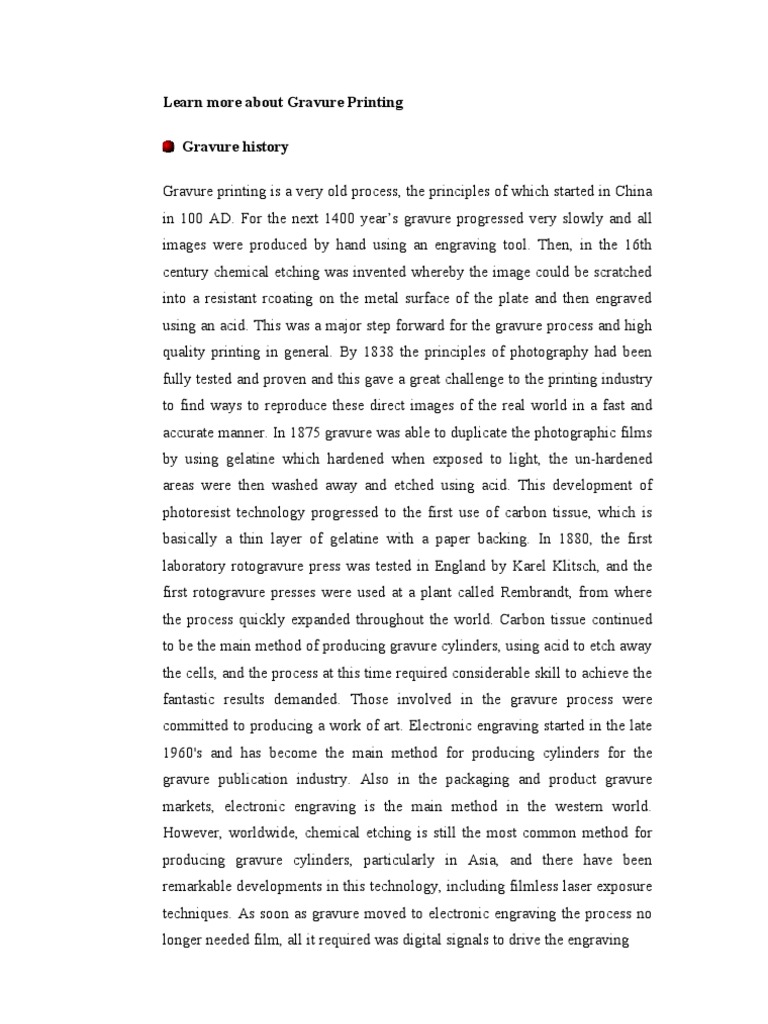 in 100 AD. For the next 1400 year’s gravure progressed very slowly and all