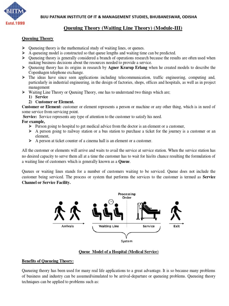 Queuing Theory (Waiting Line Theory) (Module-III)