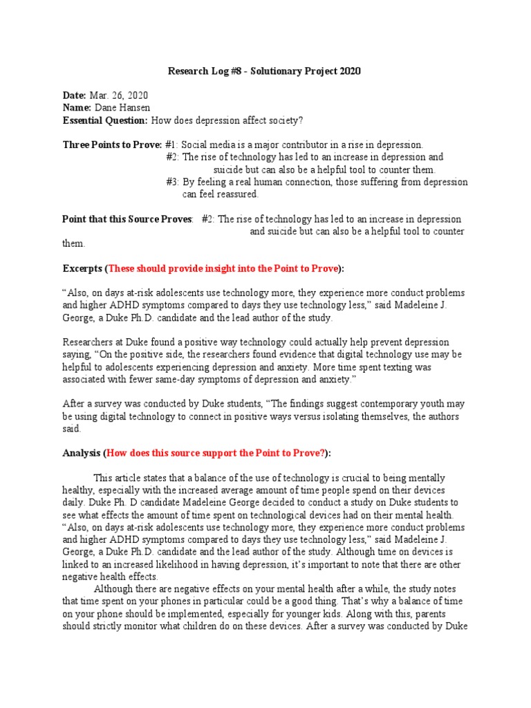 Point that this Source Proves: #2: The rise of technology has led to an increase in depression