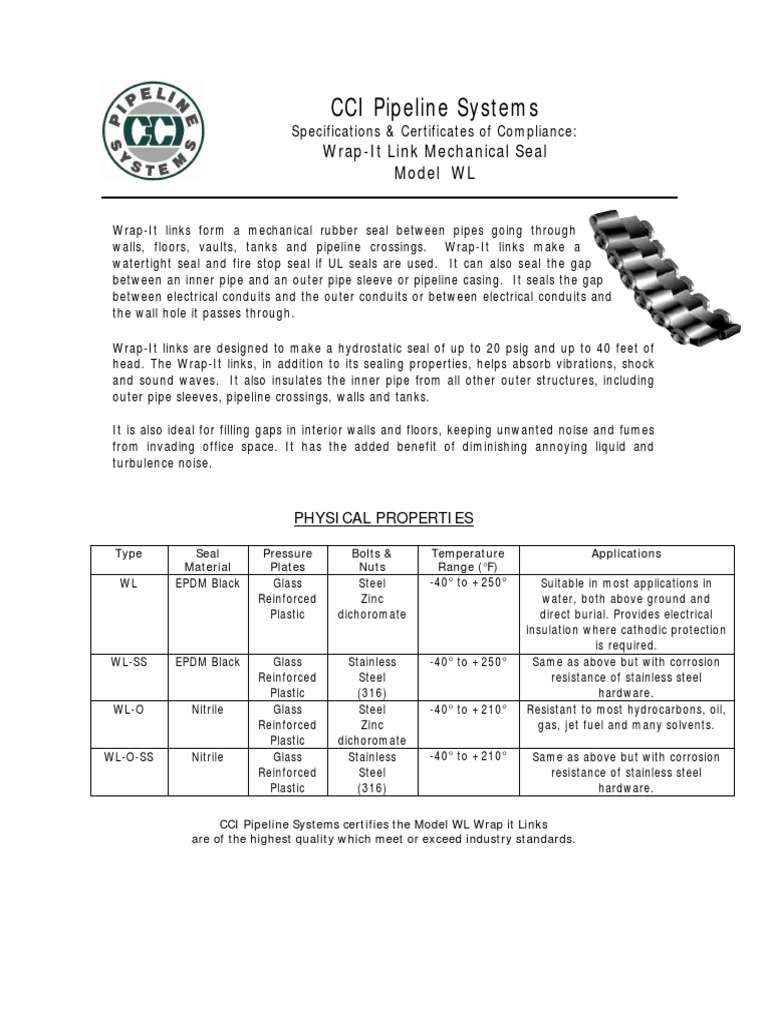 CCI Pipeline Systems certifies the Model WL Wrap it Links