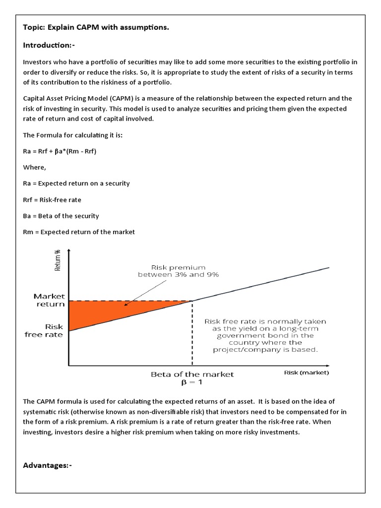 Topic: Explain CAPM with assumptions.