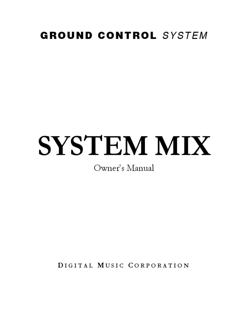 Ground Control, System Mix, GCX, and Ground Link are trademarks of Digital Music Corp.