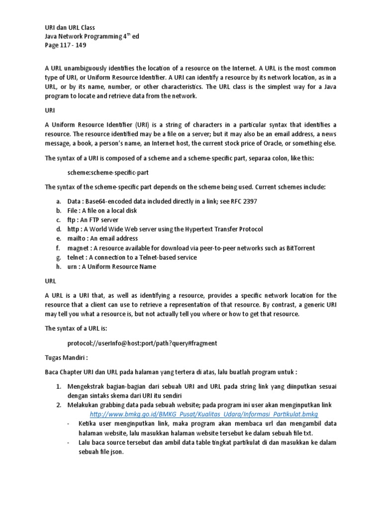 Baca Chapter URI dan URL pada halaman yang tertera di atas, lalu buatlah program untuk :