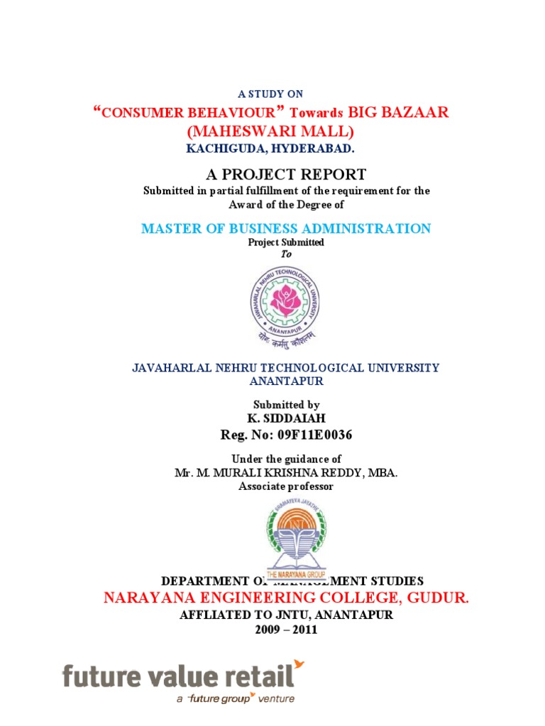 “ CONSUMER BEHAVIOR towards BIGBAZAAR-MAHESWARI