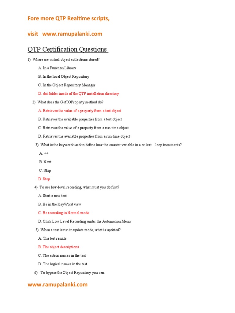 QTP Certification Questions