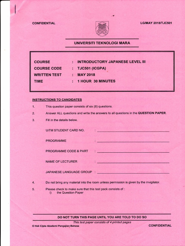 @ Hak Cipta Akademi Pengajian Bahasa CONFIDENTIAL