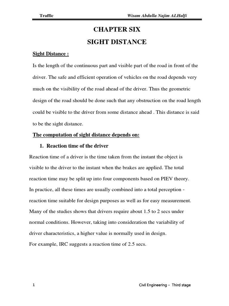 gradient, the vehicle can stop immediately. Therefore sight distance required