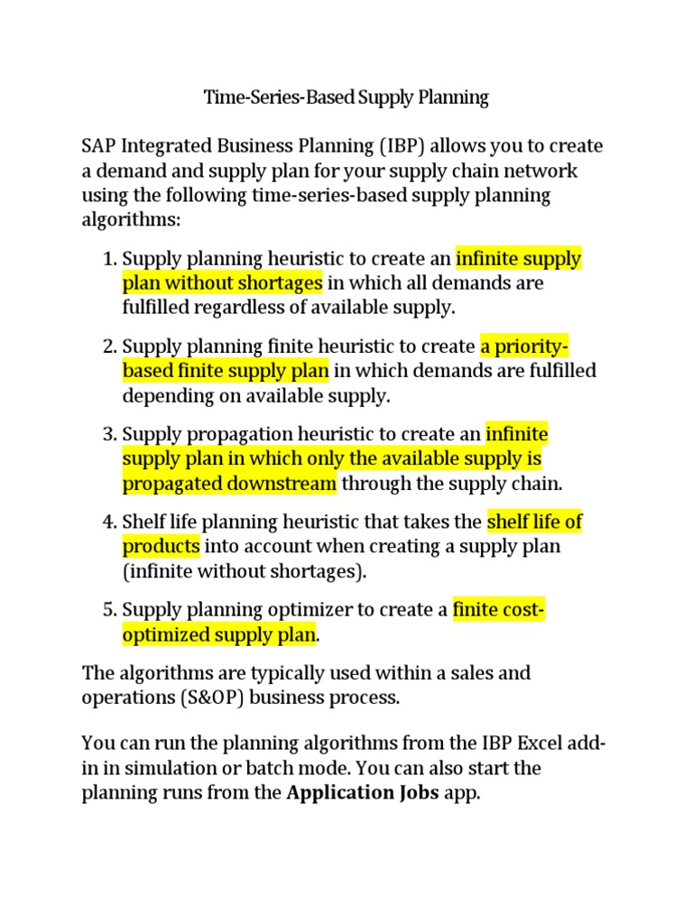 The time-series-based supply planning algorithms calculate
