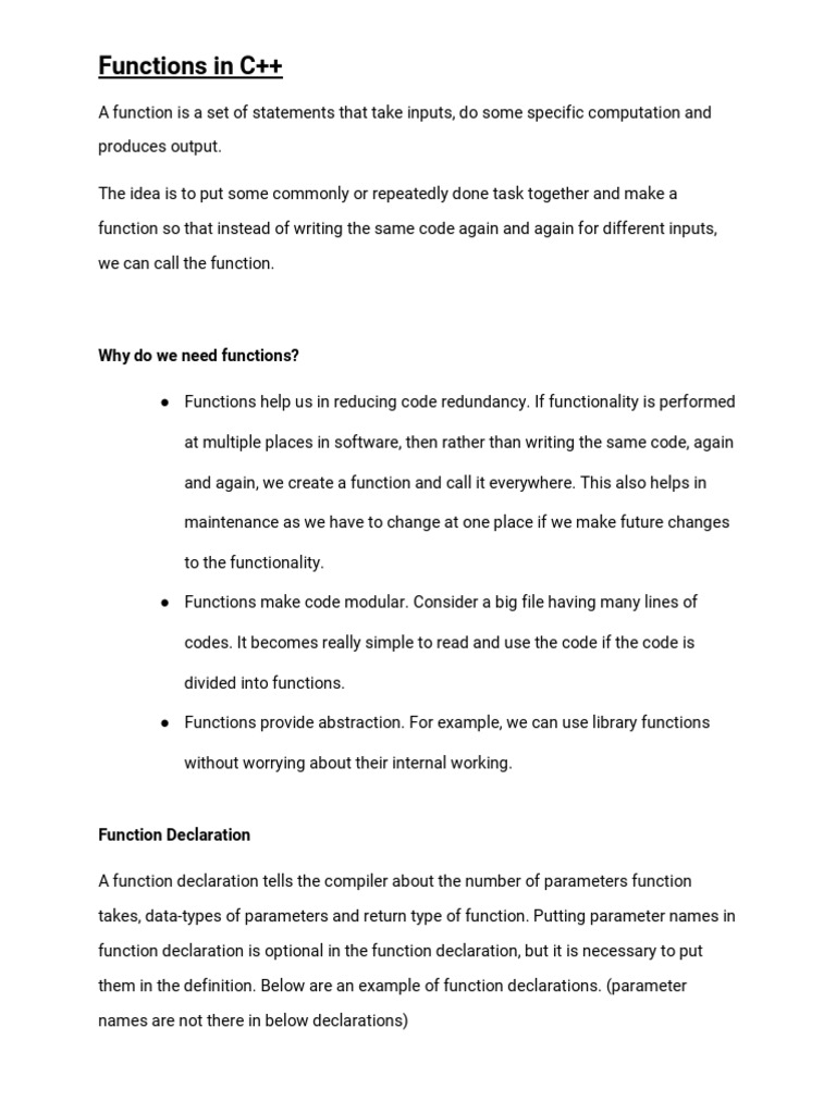 ● Functions make code modular: Consider a big file having many lines of codes. It
