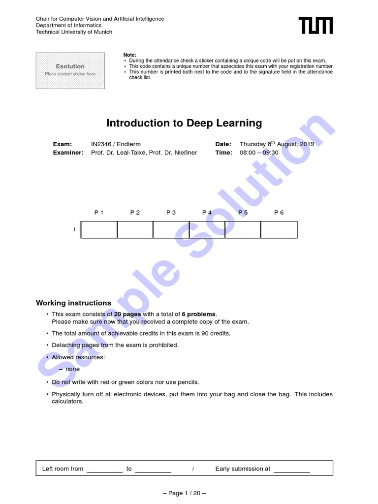 Examiner: Prof. Dr. Leal-Taixé, Prof. Dr. Nießner Time: 08:00 – 09:30