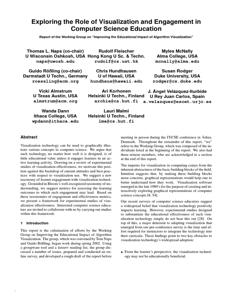 Visualization Workshop, Århus, Denmark (June 2002), as Learning Aids. 28th ACM SIGCSE Technical Sym-