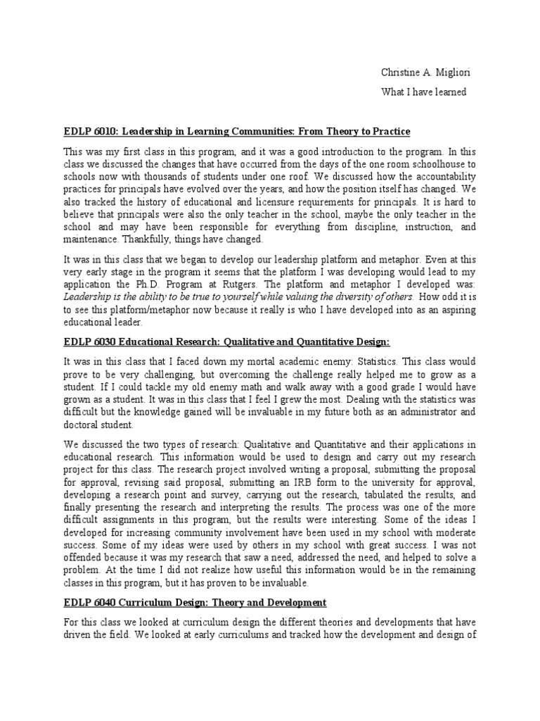 EDLP 6010: Leadership in Learning Communities: From Theory to Practice
