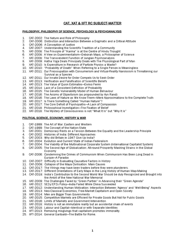 CAT, XAT & IIFT RC SUBJECT-MATTER