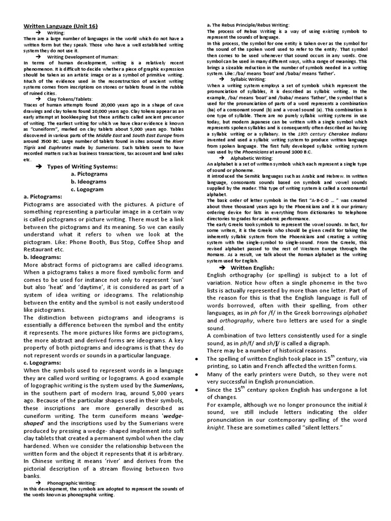 Written Language (Unit 16) a.