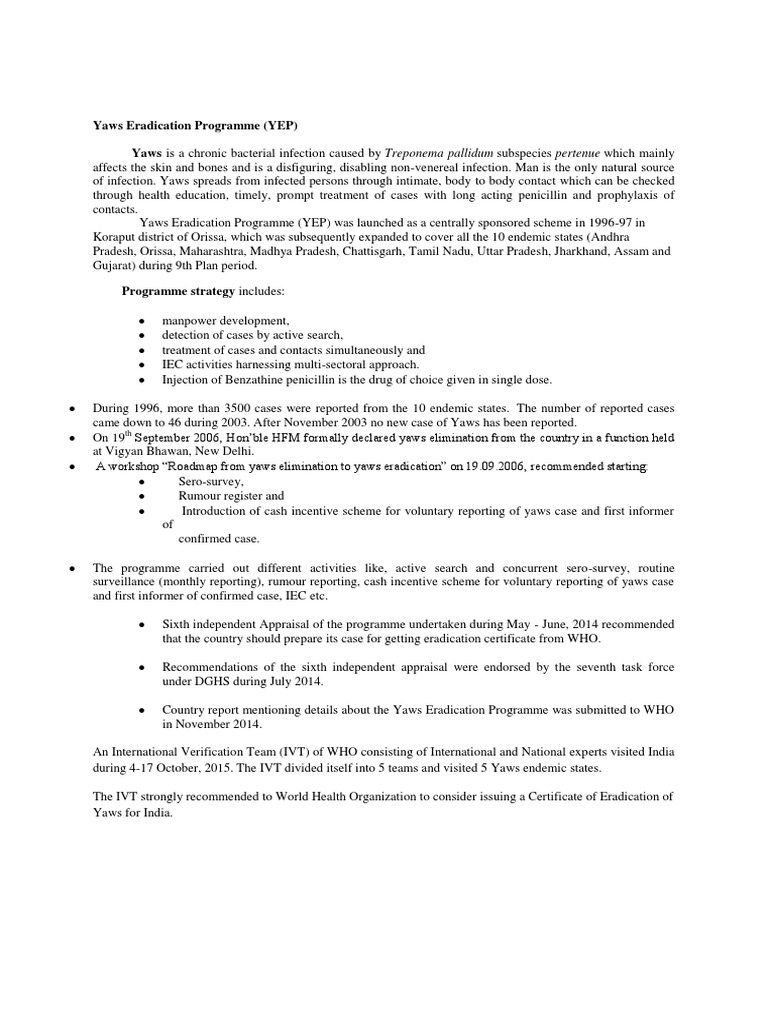 On 19th September 2006, Hon’ble HFM formally declared yaws elimination from the country in a function held