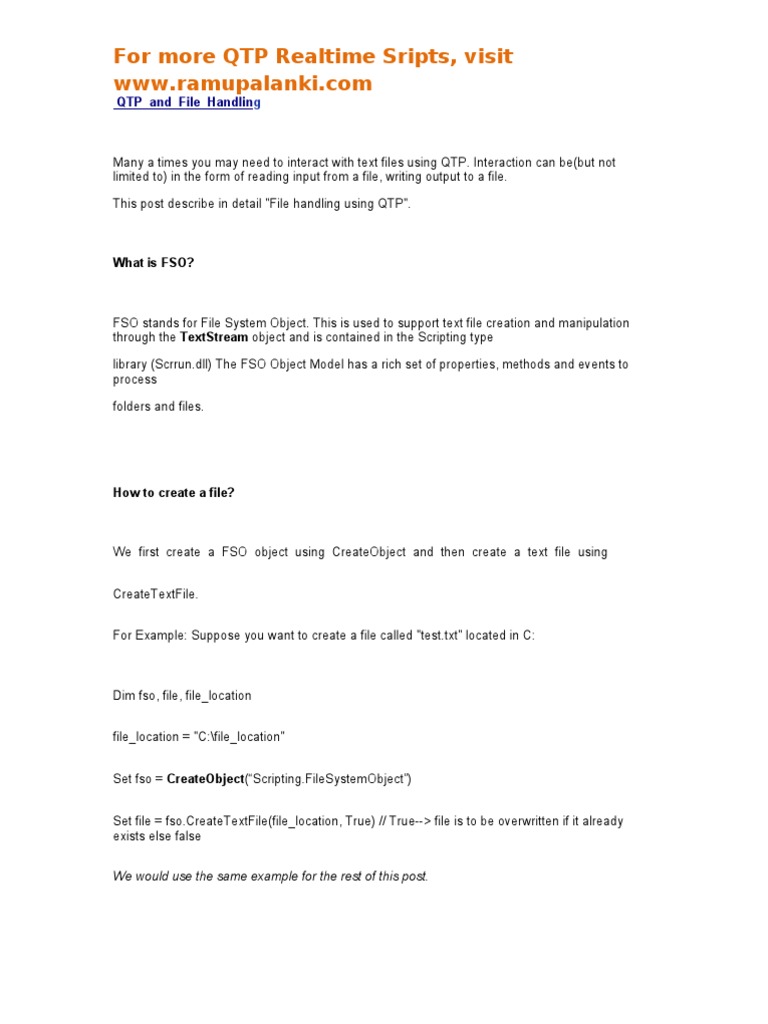 Many a times you may need to interact with text files using QTP. Interaction can be(but not