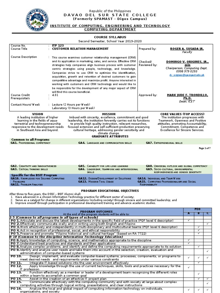 Course Title : CUSTOMER RELATION MANAGEMENT Prepared by: ROGER A. SUSADA JR.