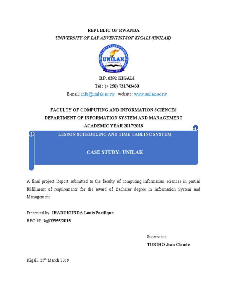 SCHEDULING AND TIMETABLING SYSTEM” case study “UNIVERSITY OF LAY