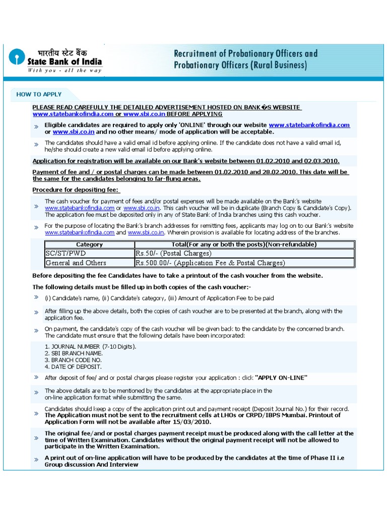 www.statebankofindia.com or www.sbi.co.in. This cash voucher will be in duplicate (Branch Copy & Candidate's Copy).