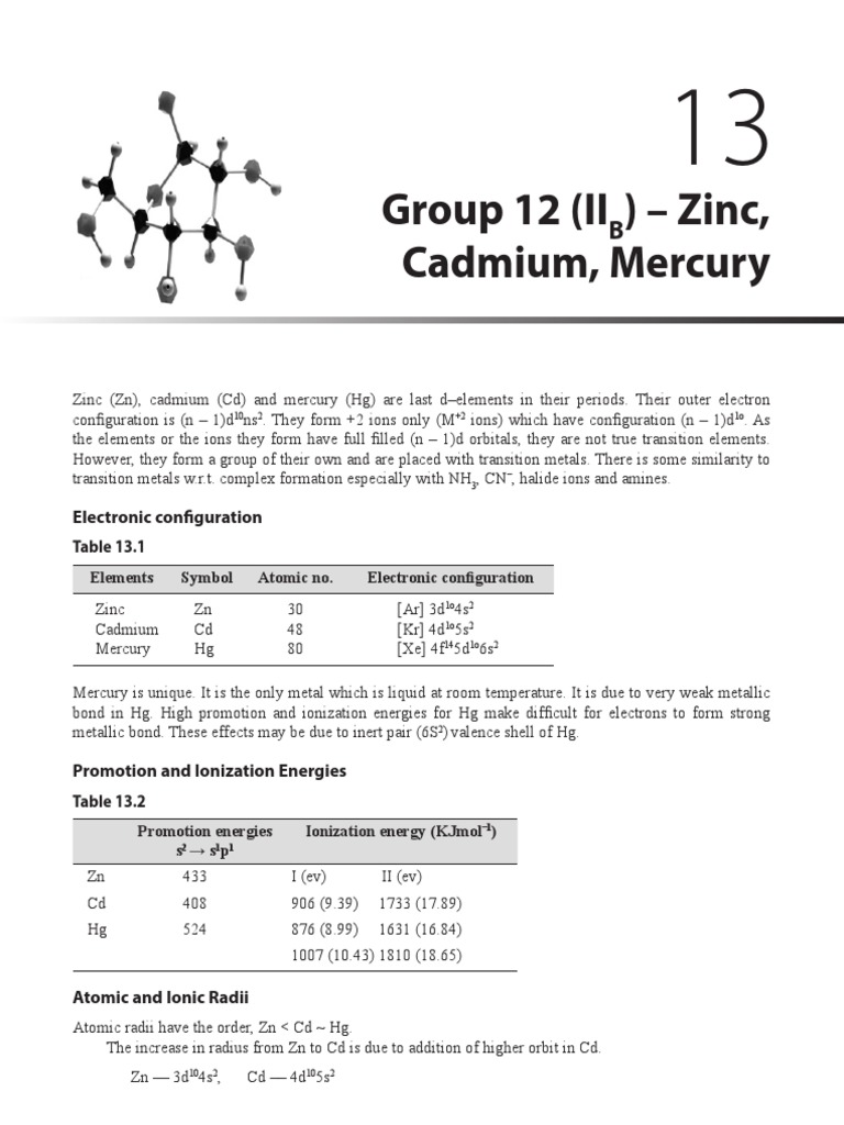 and Hg. The order found is, Zn > Cd < Hg. IE(ev)