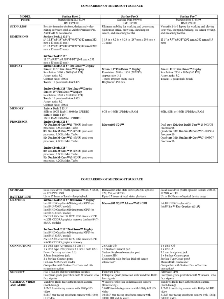 MODEL Surface Book 2 Surface Pro X Surface Pro 7