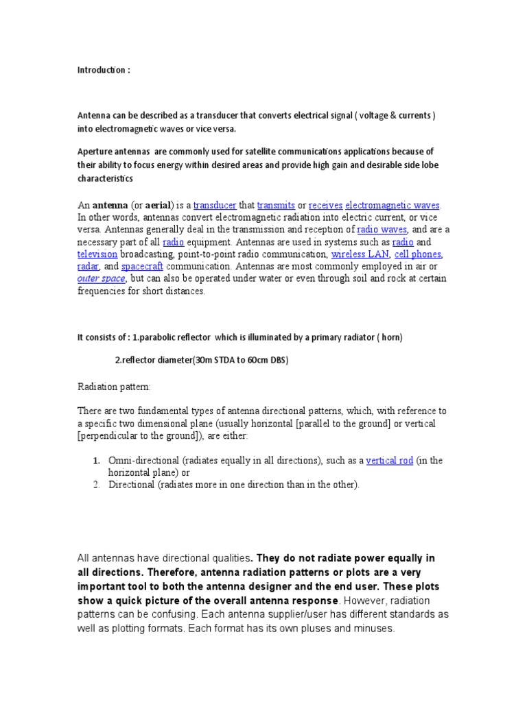 element and the transmission line to the receiver. For a satellite communications antenna the