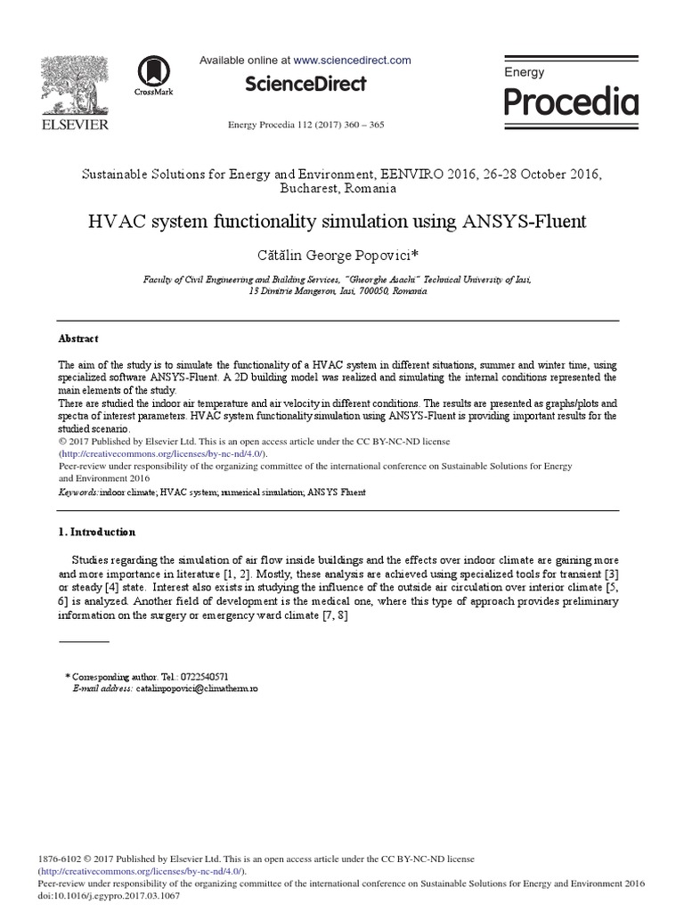 [2] Popovici CG, Hudișteanu SV.Numerical simulation of HVAC system functionality in a socioculturalbuilding, Procedia Technology 22;
