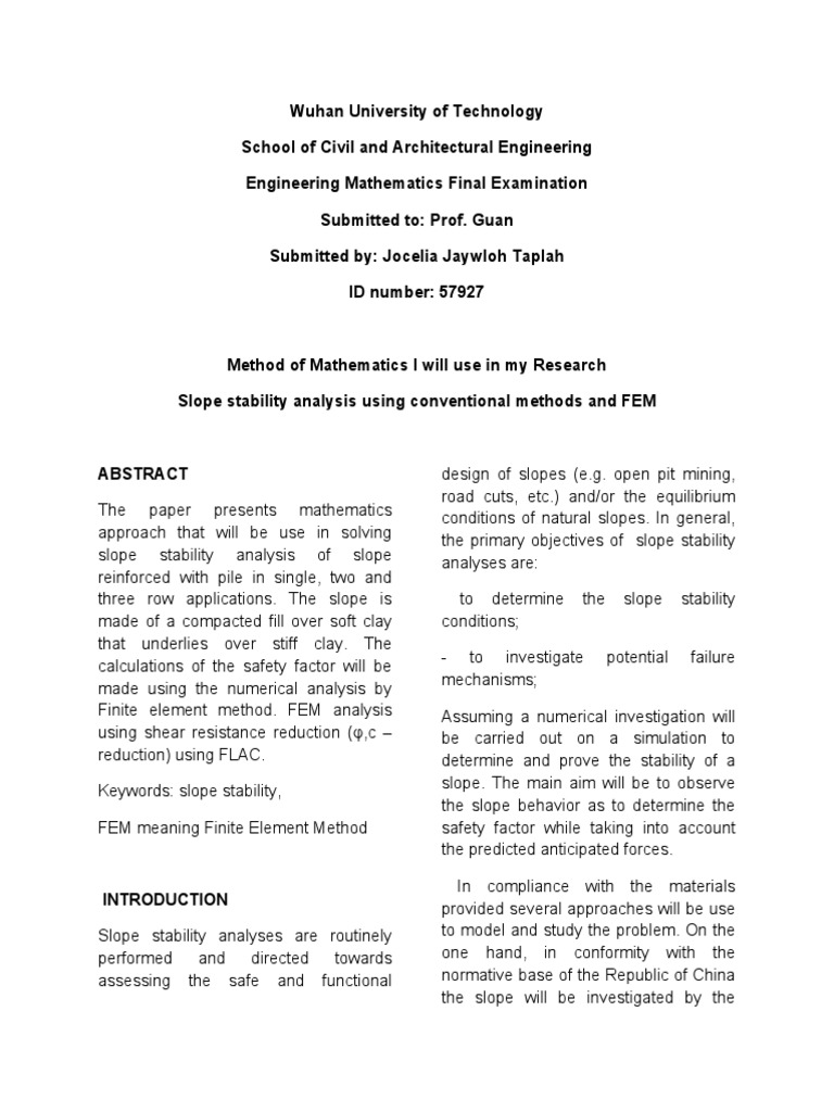 equilibrium. Slope failure and numerical for the clay layers, and as for the fill, it is