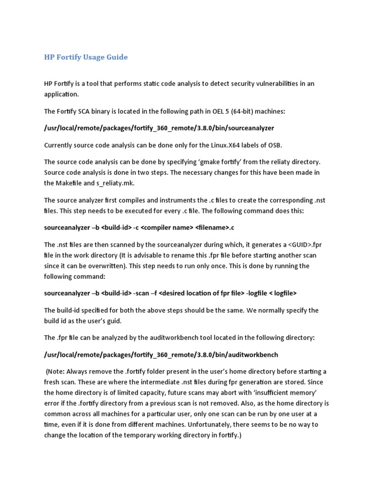HP Fortify Usage Guide