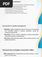 • In this course we shall consider Quality Management with