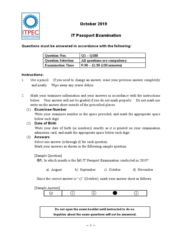Q1. In which month is the fall IT Passport Examination conducted in 2019?