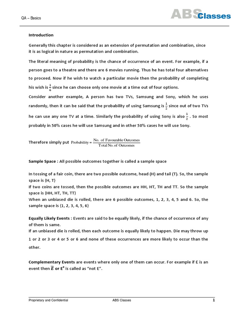 MUTUALLY EXCLUSIVE & EXHAUSTIVE SYSTEM OF EVENTS