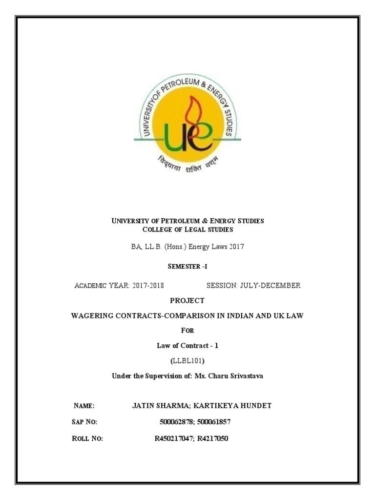 WAGERING CONTRACTS-COMPARISON IN INDIAN AND UK LAW
